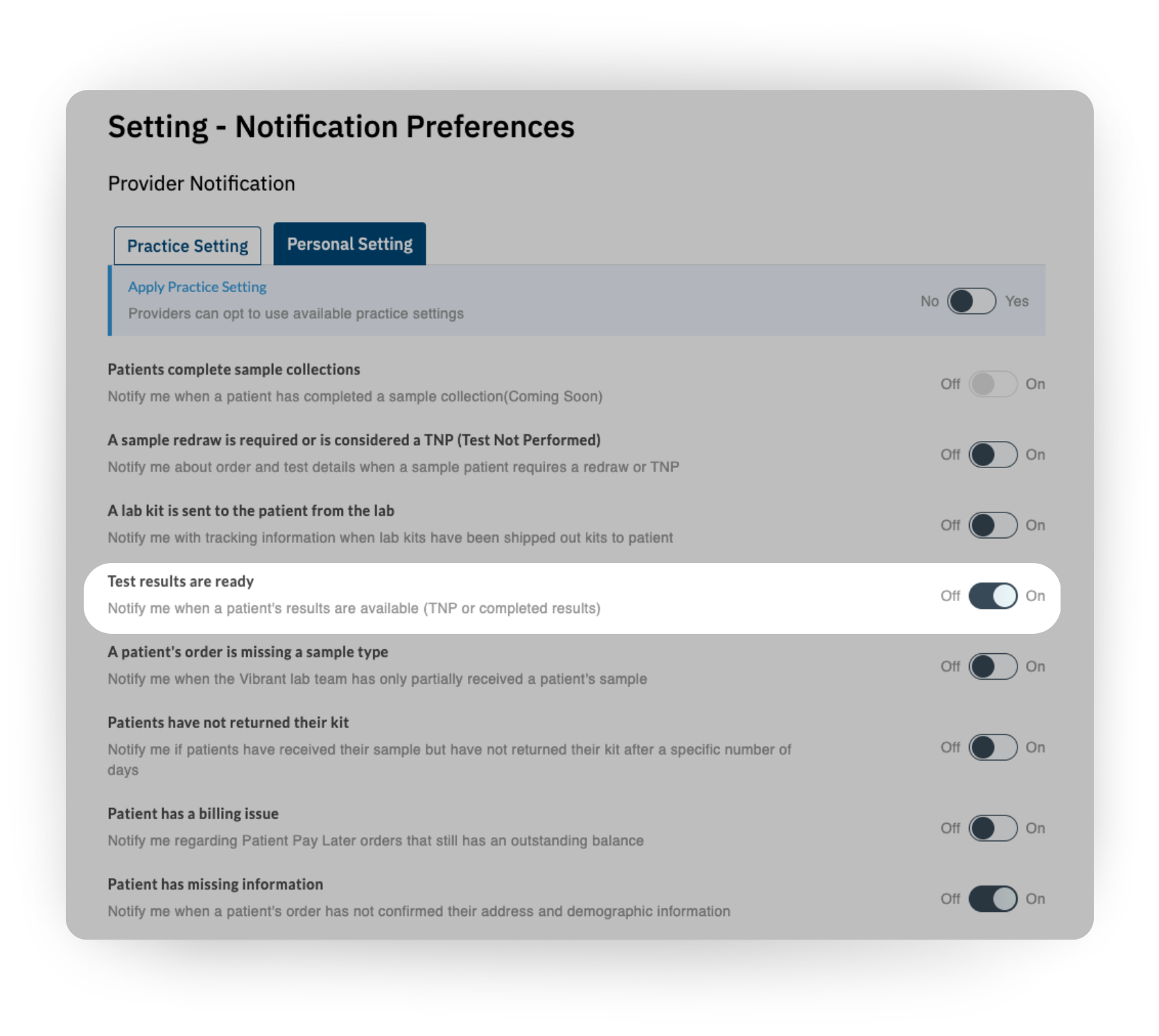 Users are able to receive email notifications about a patient's test are ready to be reviewed.