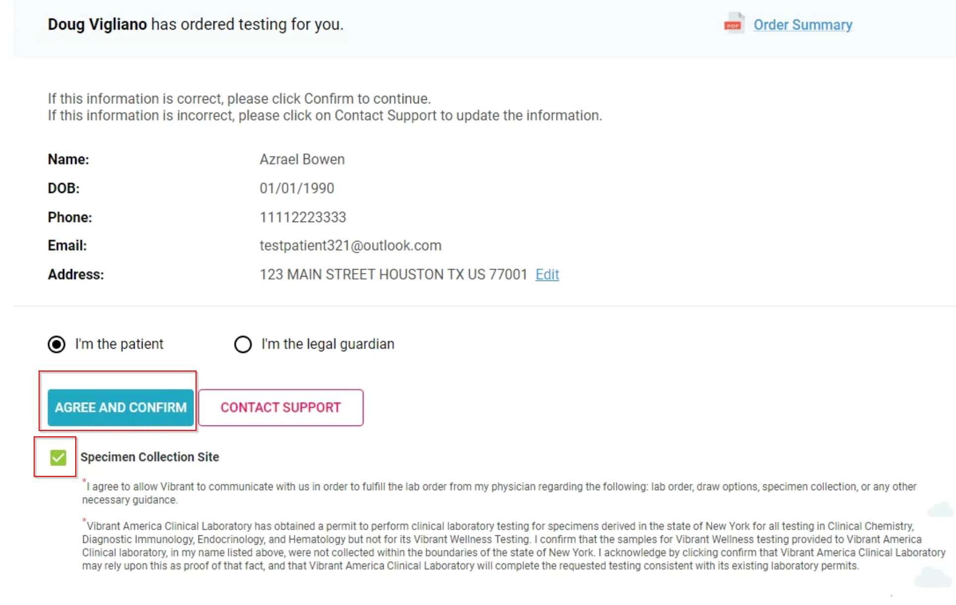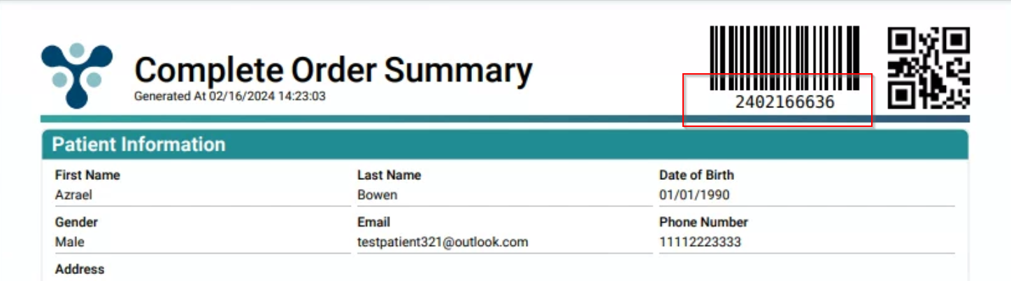 To access the patient portal, you'll need your 10-Digit Accession ID, located on the top right-hand corner of the order summary, along with your personal details. You will also be able to find the the accession id in the order confirmation email that you received.