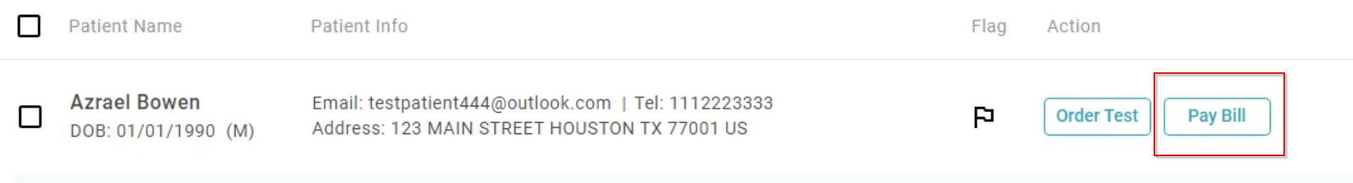 4. Once you find the patient, click on the "Pay Bill" button associated with the entry which will pop up the payment page.