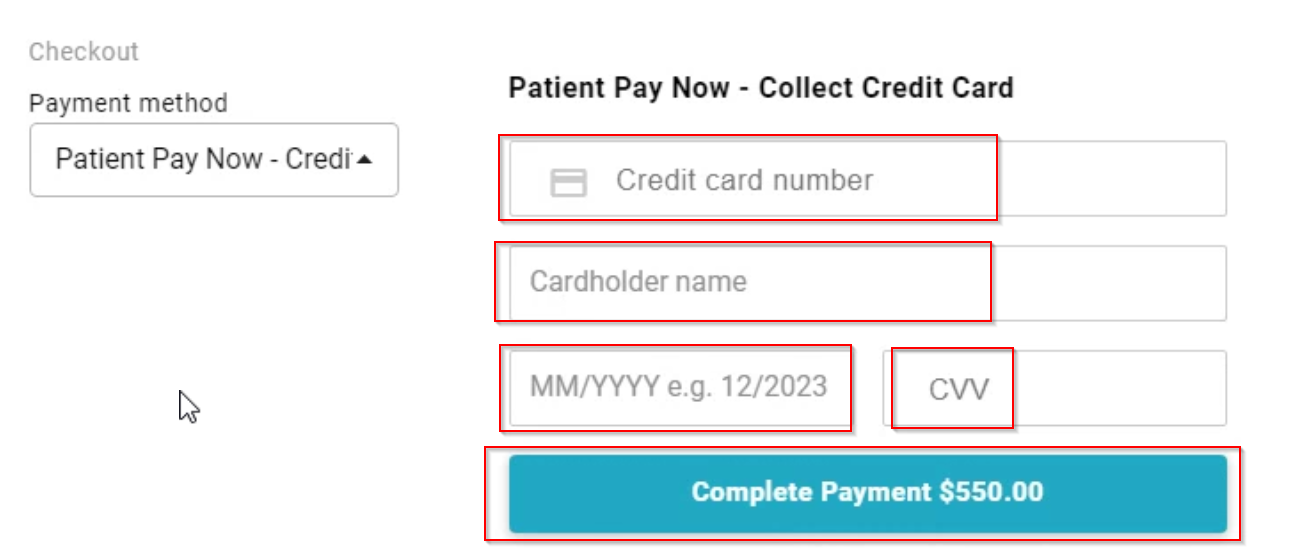 - Patient Pay Now - Credit Card : This will allow you to charge the patient's cc and complete the payment.