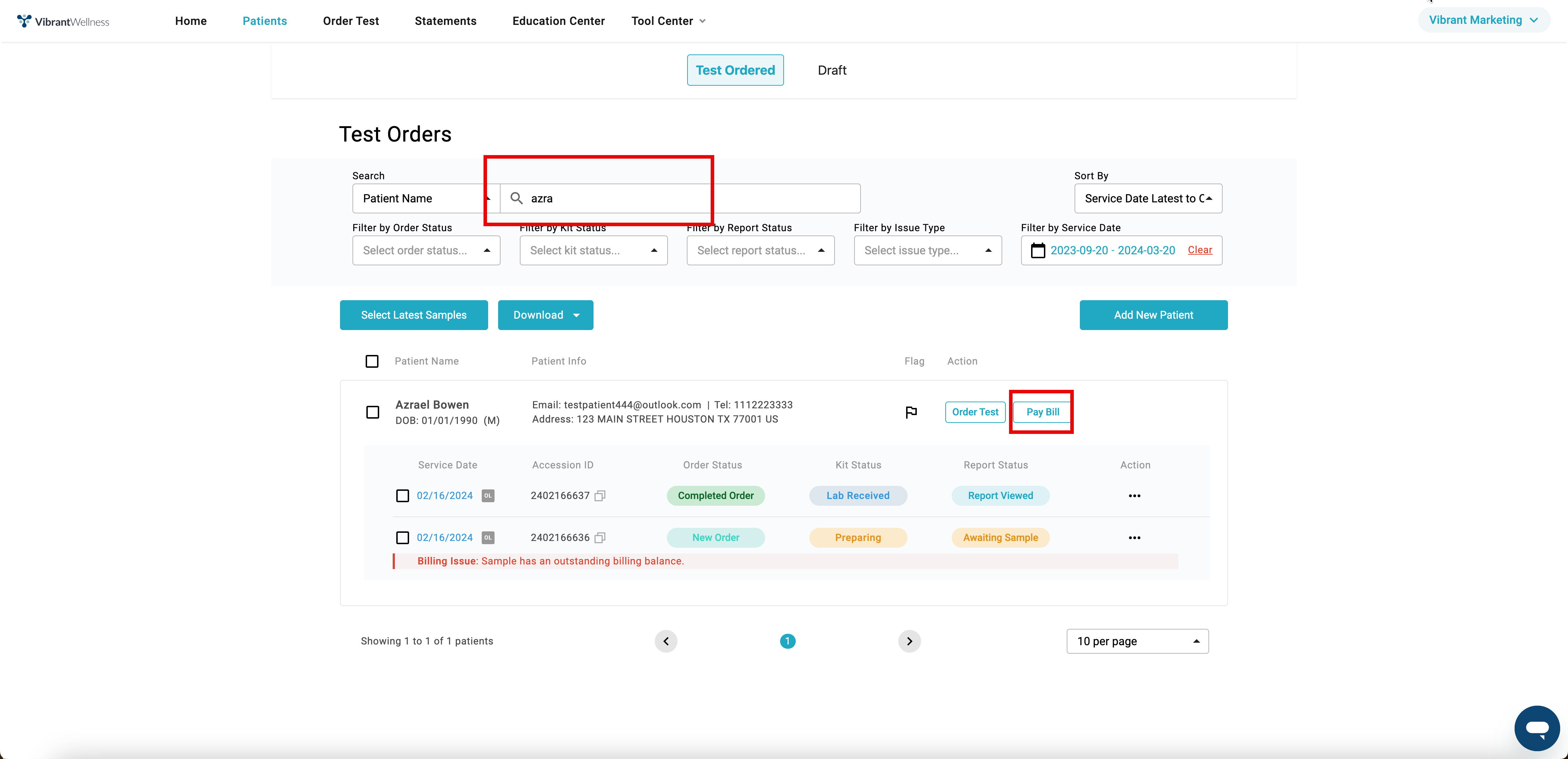 You may also search for the patient by name, accession ID, or DOB in the Patients Tab.