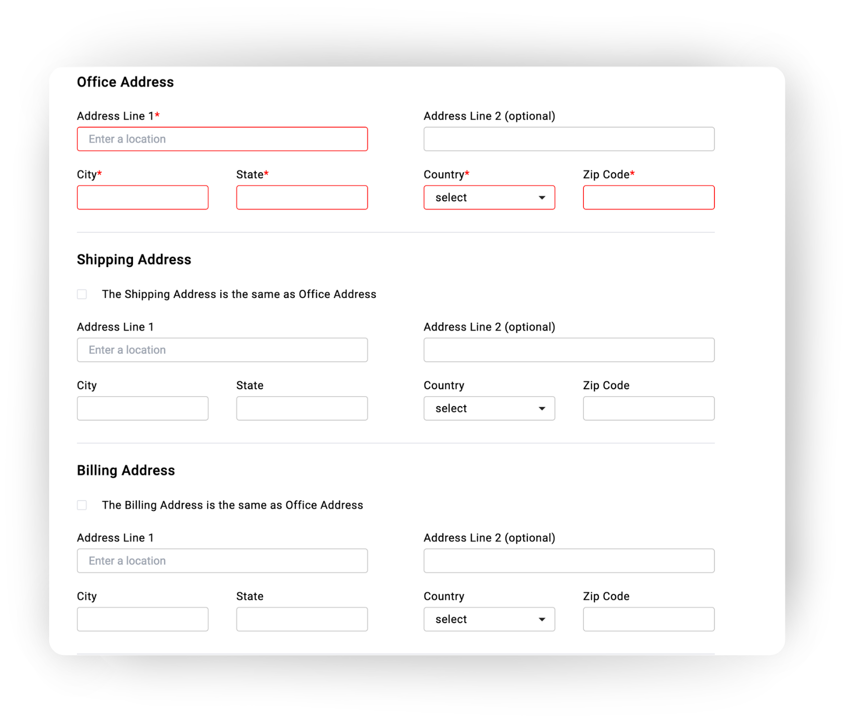 Billing Address: The billing address for your practice or organization. If multi- location, the billing address you use on a personal level may not be your physical office address if a third-party or headquarters office handles your billing for you. The billing address should match the credit card or bank account you use for the provider office bill payment method.