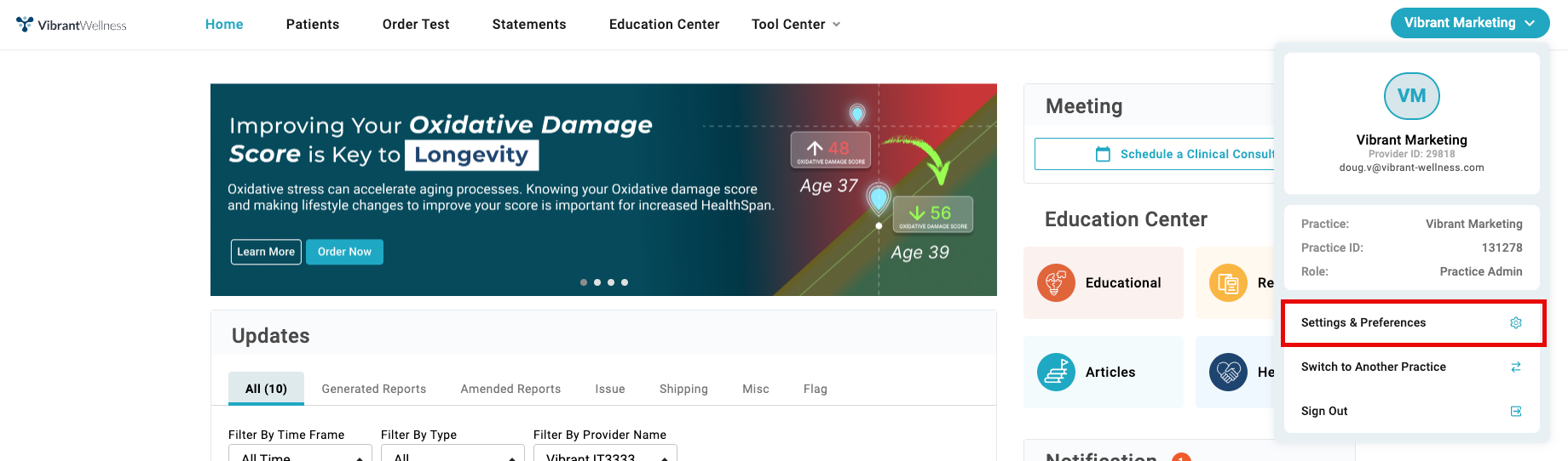Change your contact information, addresses, and manage the providers in your practice.