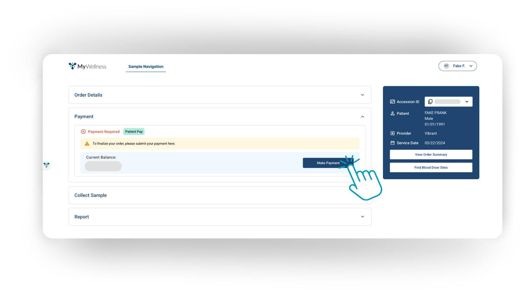 Patients can view their remaining balance by accessing the MyWellness Patient Portal. To log in, patients will need their accession ID from the order summary that was emailed to them.