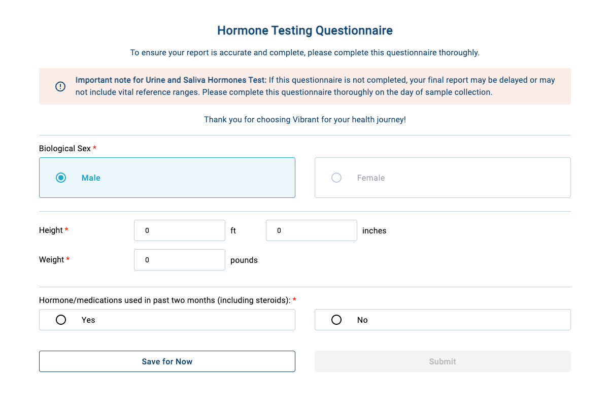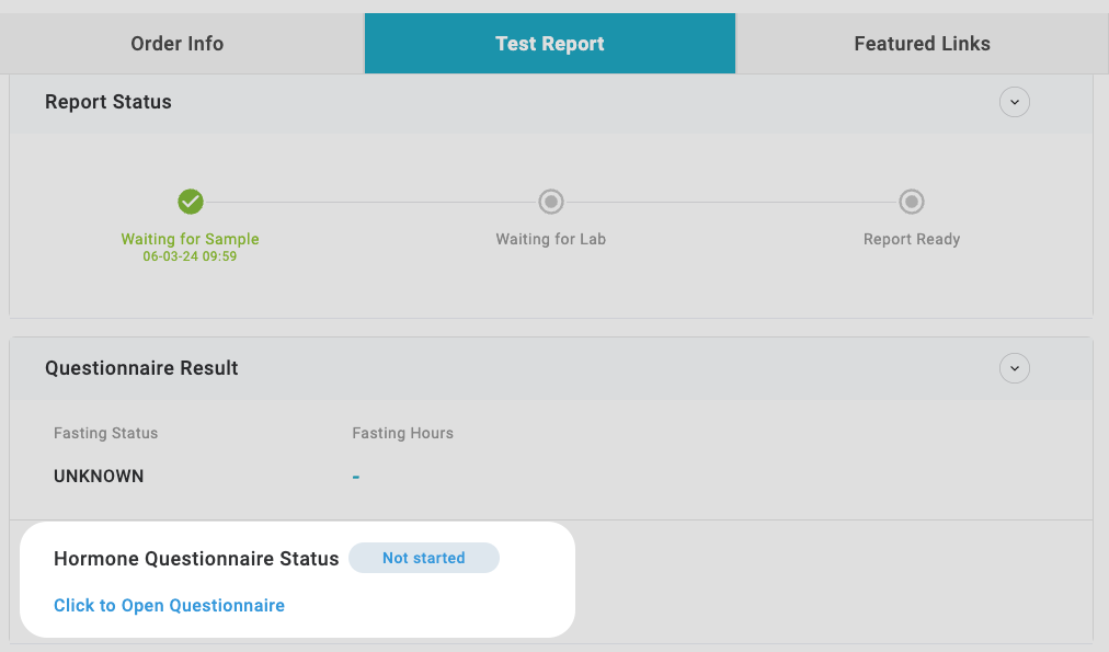 Some of our tests require a patient questionnaire for more accurate results. The questionnaire must be completed for the sample to be processed, so results cannot be given without it.