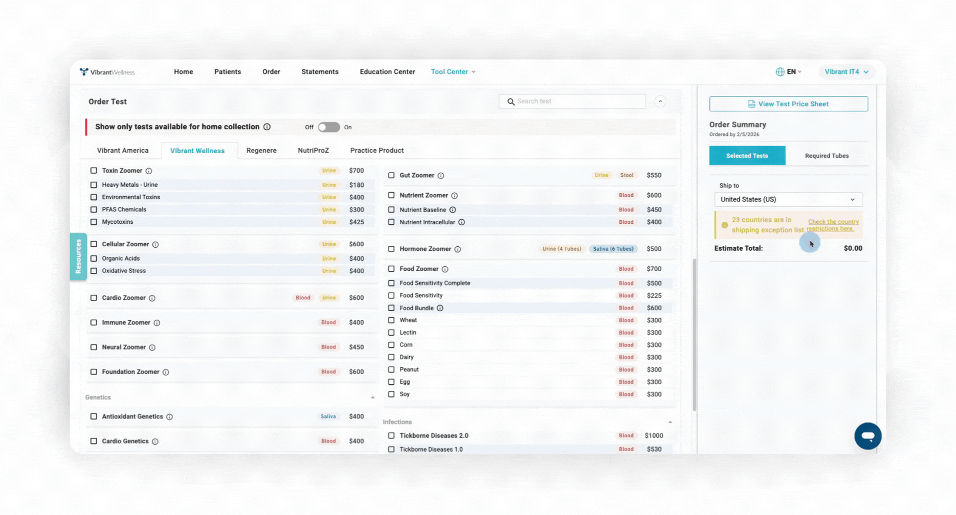 For the most up-to-date list of countries we currently ship to, please check the Order Page or the Test Price Calculator within the Provider Portal. These resources will reflect the latest shipping restrictions and availability.