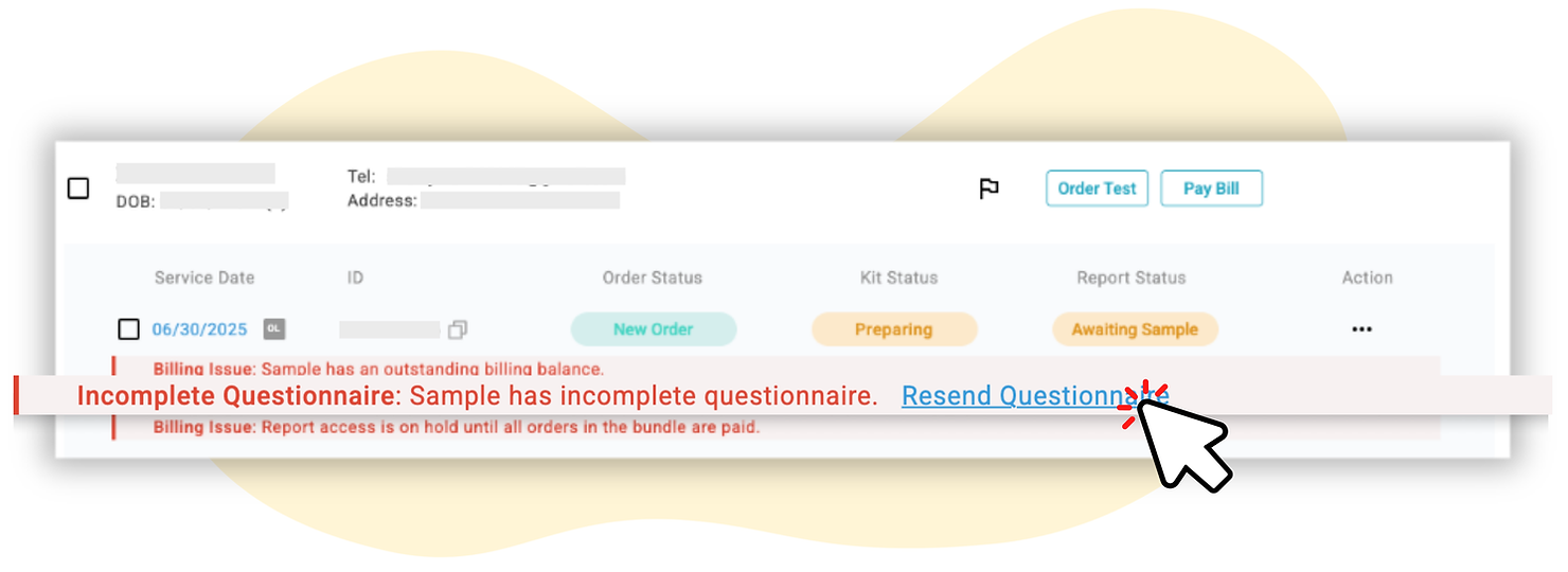 Questionnaires can be resent from the issue flag on the Patients tab.