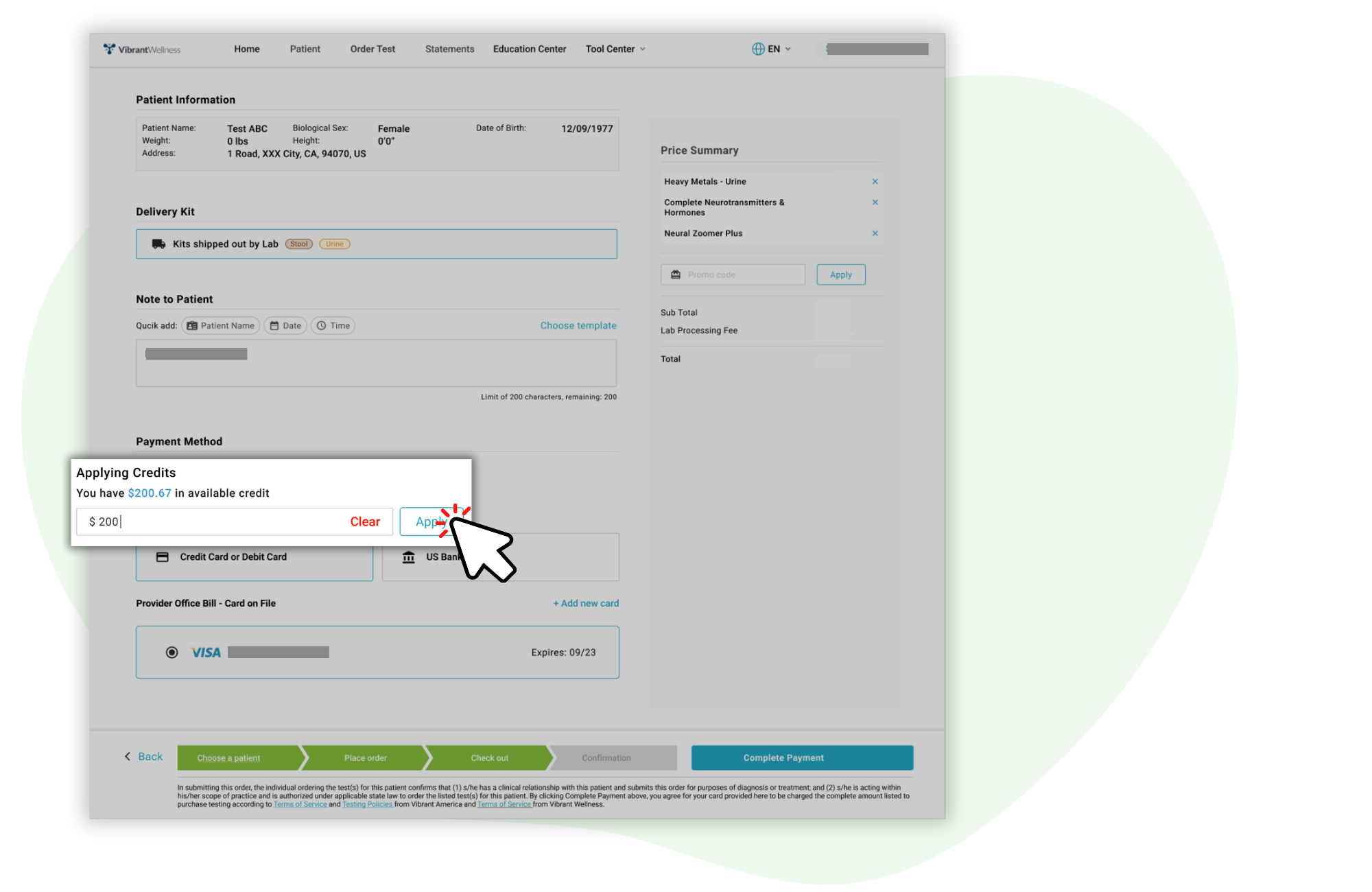 - Begin placing an order and select Checkout.
