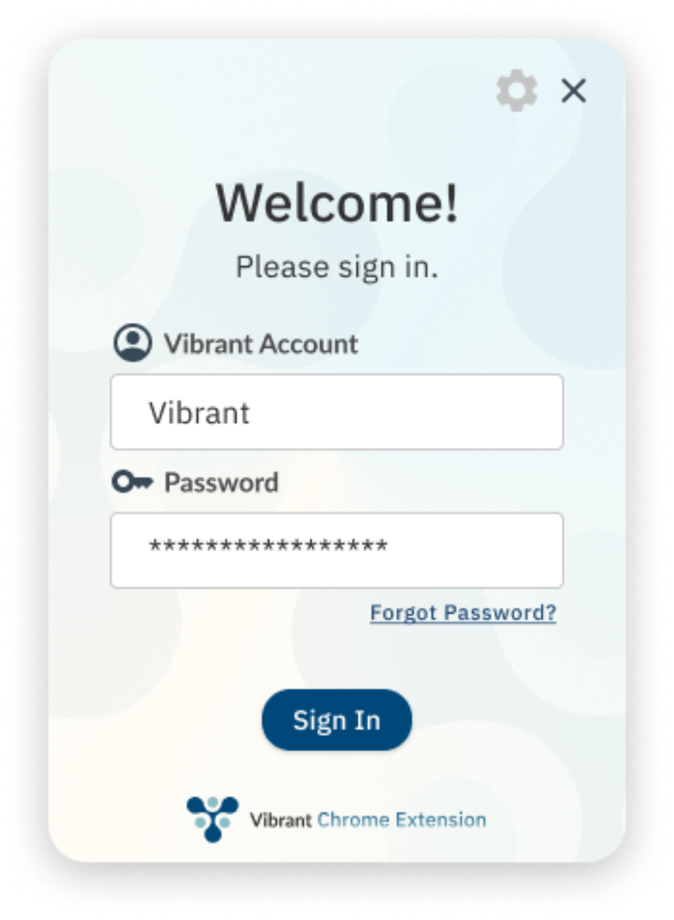 Open the extension and sign in using existing Vibrant Provider Portal credentials. Once logged in, users can begin syncing patient data directly from their EHR and start using all Vibrant Chrome Extension features.