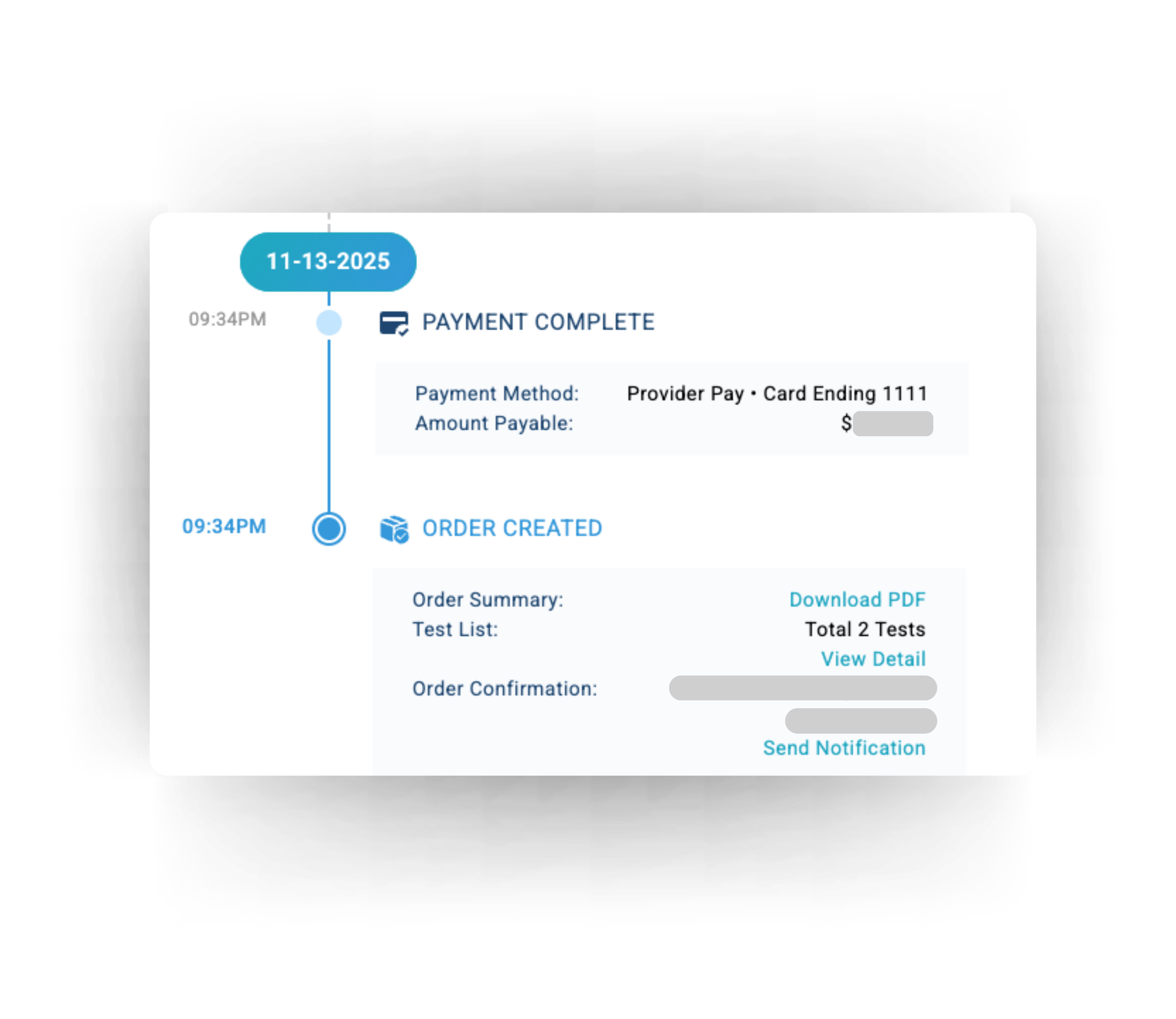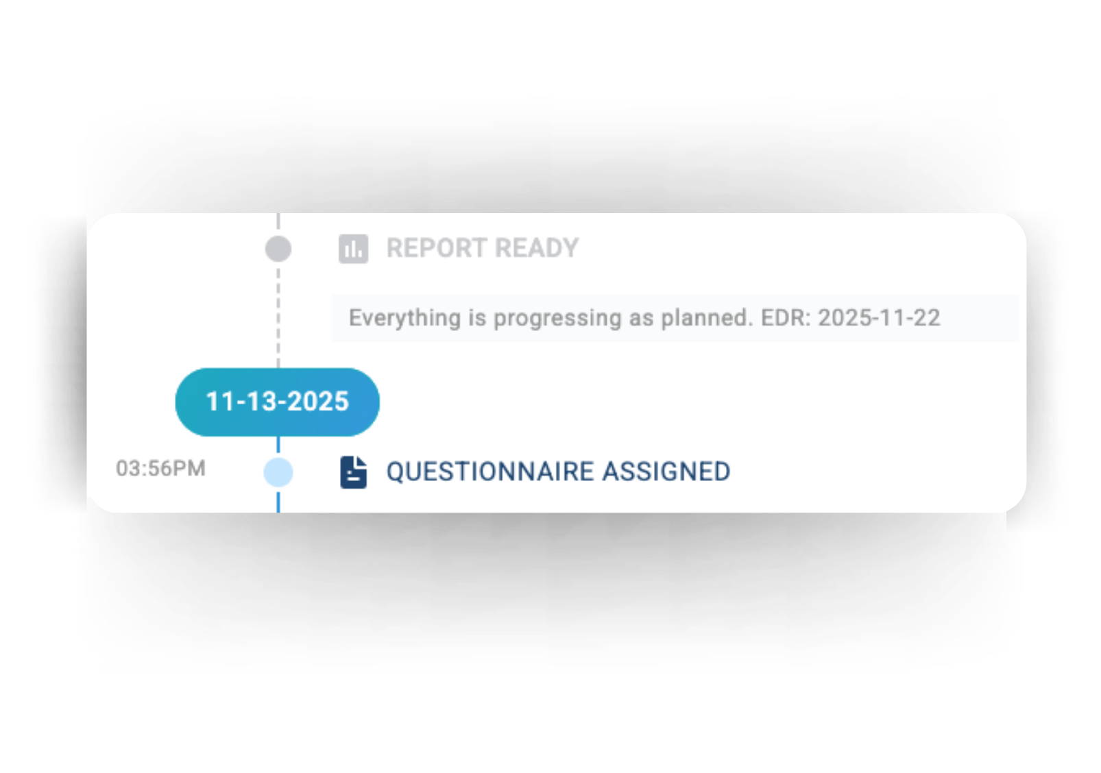 The Sample Timeline gives providers a clear view of completed and upcoming steps. All future events remain grayed out until they are completed.