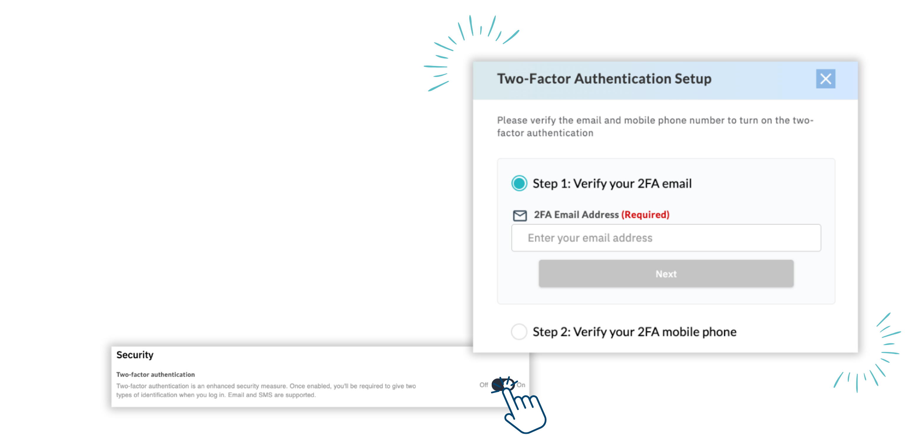Scroll down and select Two-Factor authentication and follow the prompts in the pop up menu.