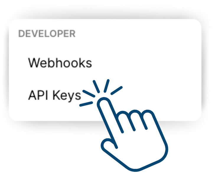 Scroll down to the bottom of the page, and under Developer, select API Keys.
