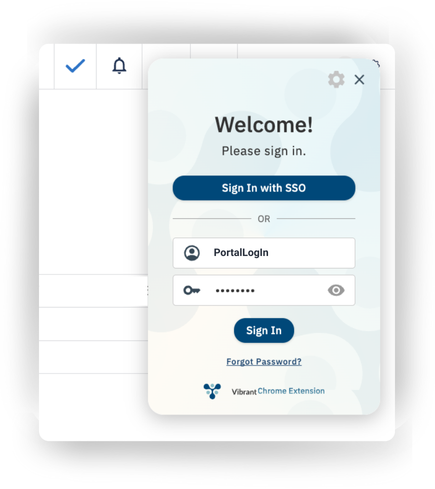 2. Click on the Vibrant Chrome Extension icon in the browser toolbar, and log in using your Vibrant Provider Portal Credentials.