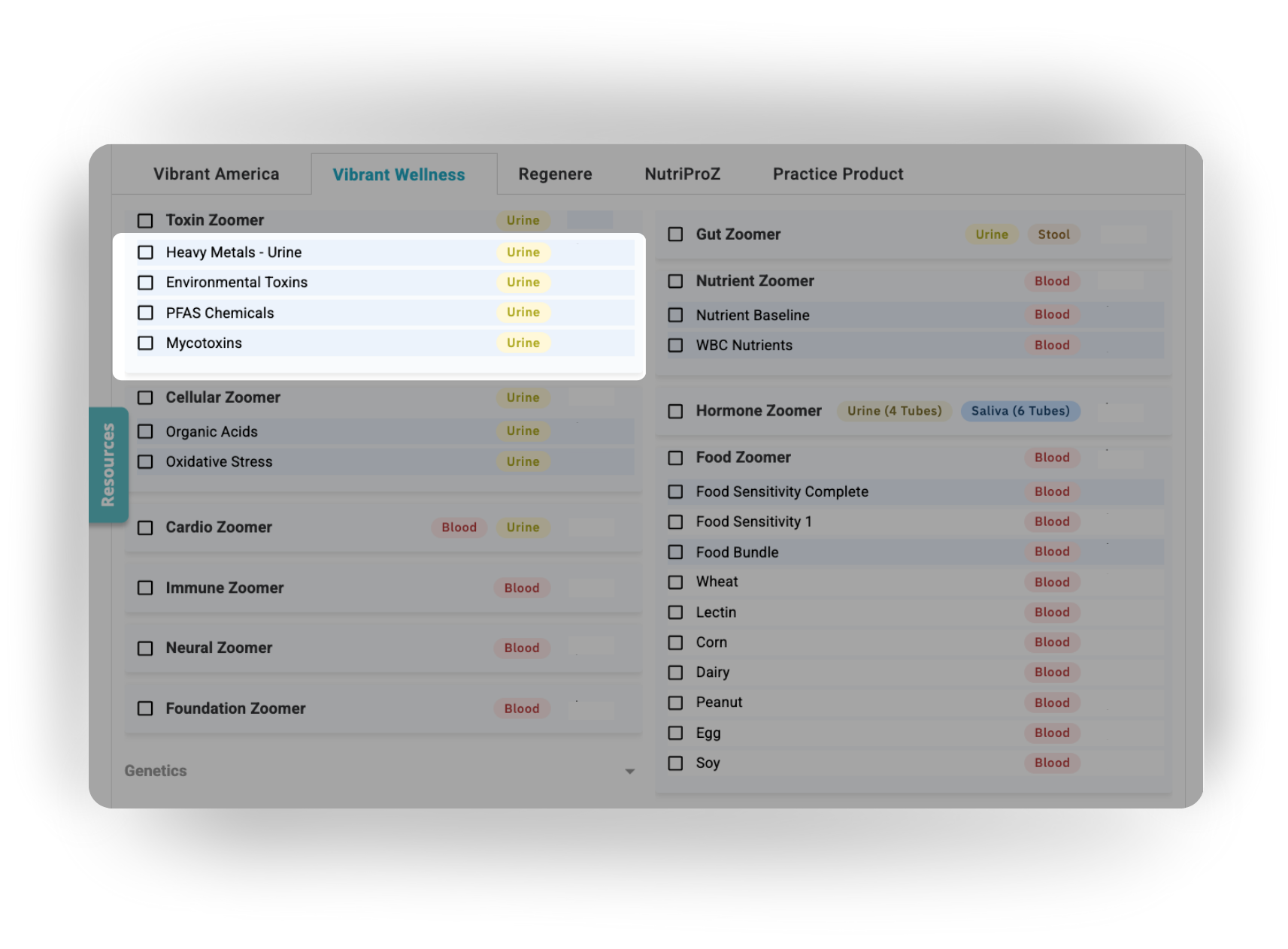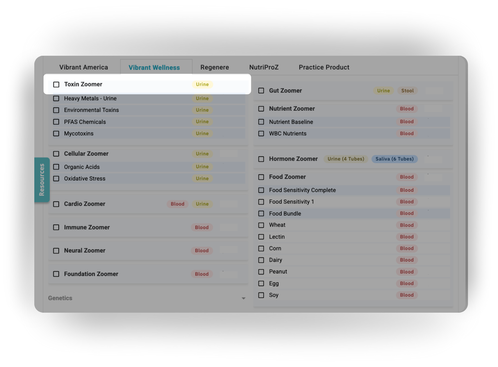 Zoomer level tests are comprehensive panels that assess multiple related biomarkers within a single order. They are designed to provide broad, clinically relevant insights while maintaining a clear and structured ordering experience.