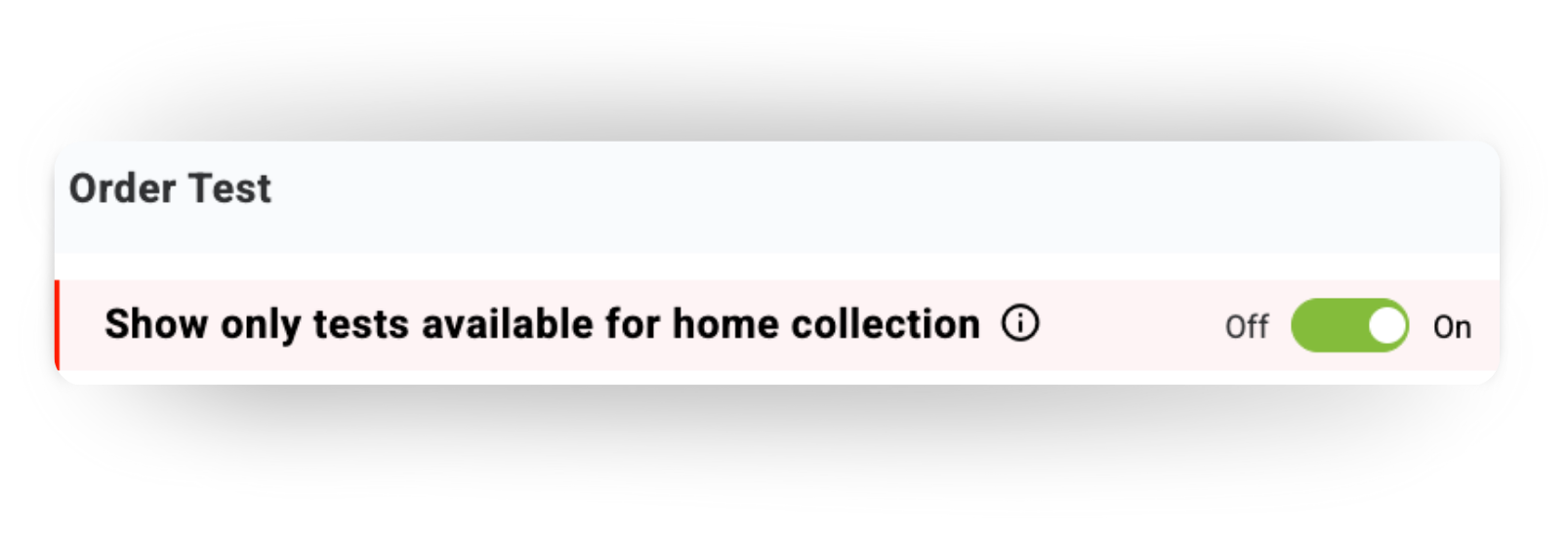 The at-home testing menu automatically filters the test catalog to show only tests that support patient self-collection. Tests that require professional blood draws or in-office procedures do not appear in the at-home menu.